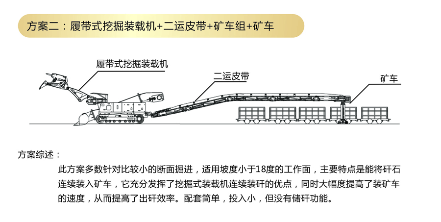 方案二:履带式挖掘装载机+二运皮带+矿车组