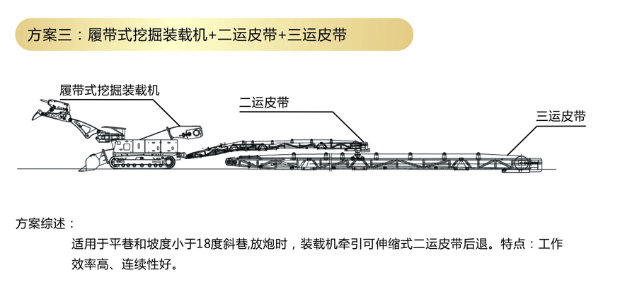 方案三:履带式挖掘装载机+二运皮带机+三运皮带机